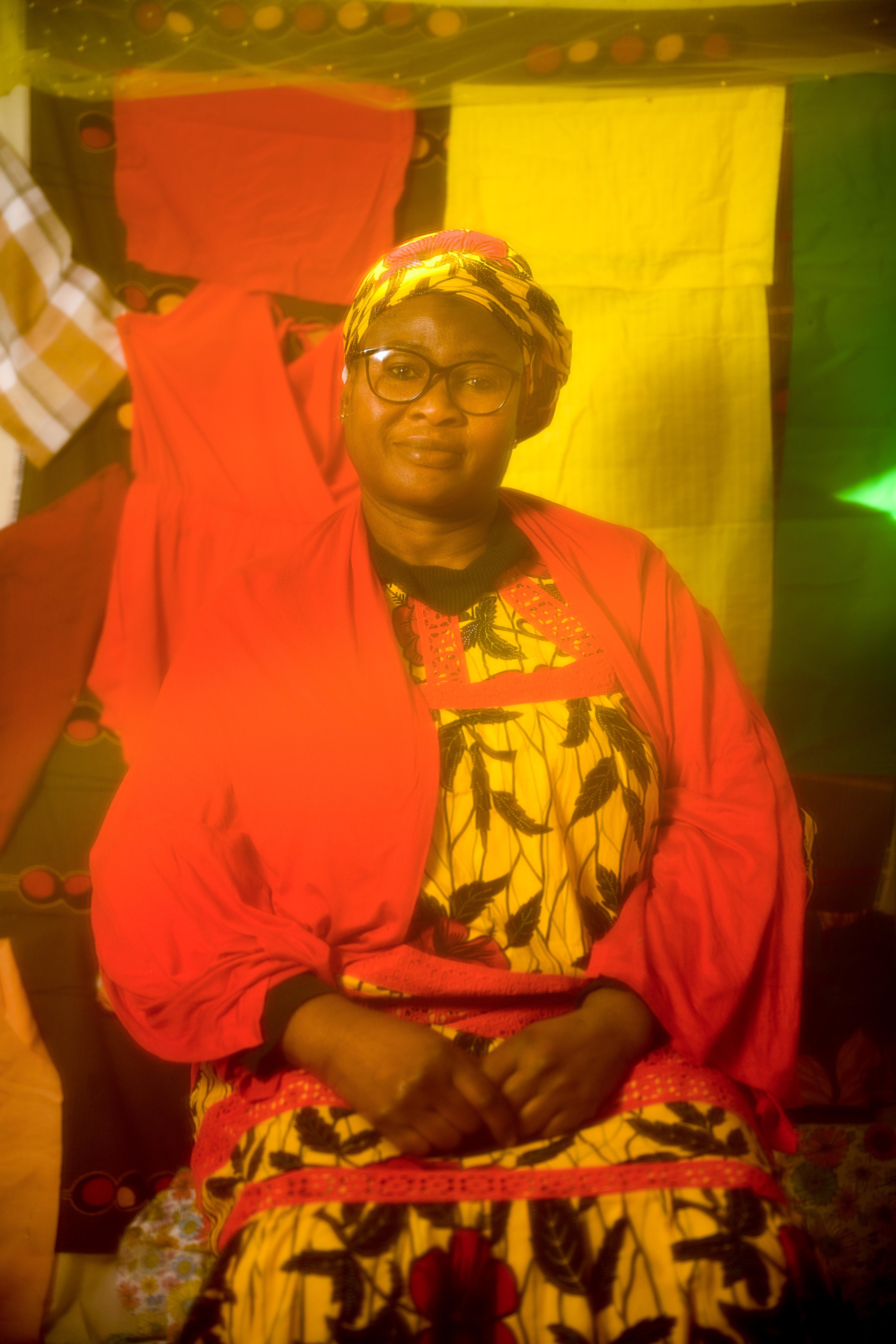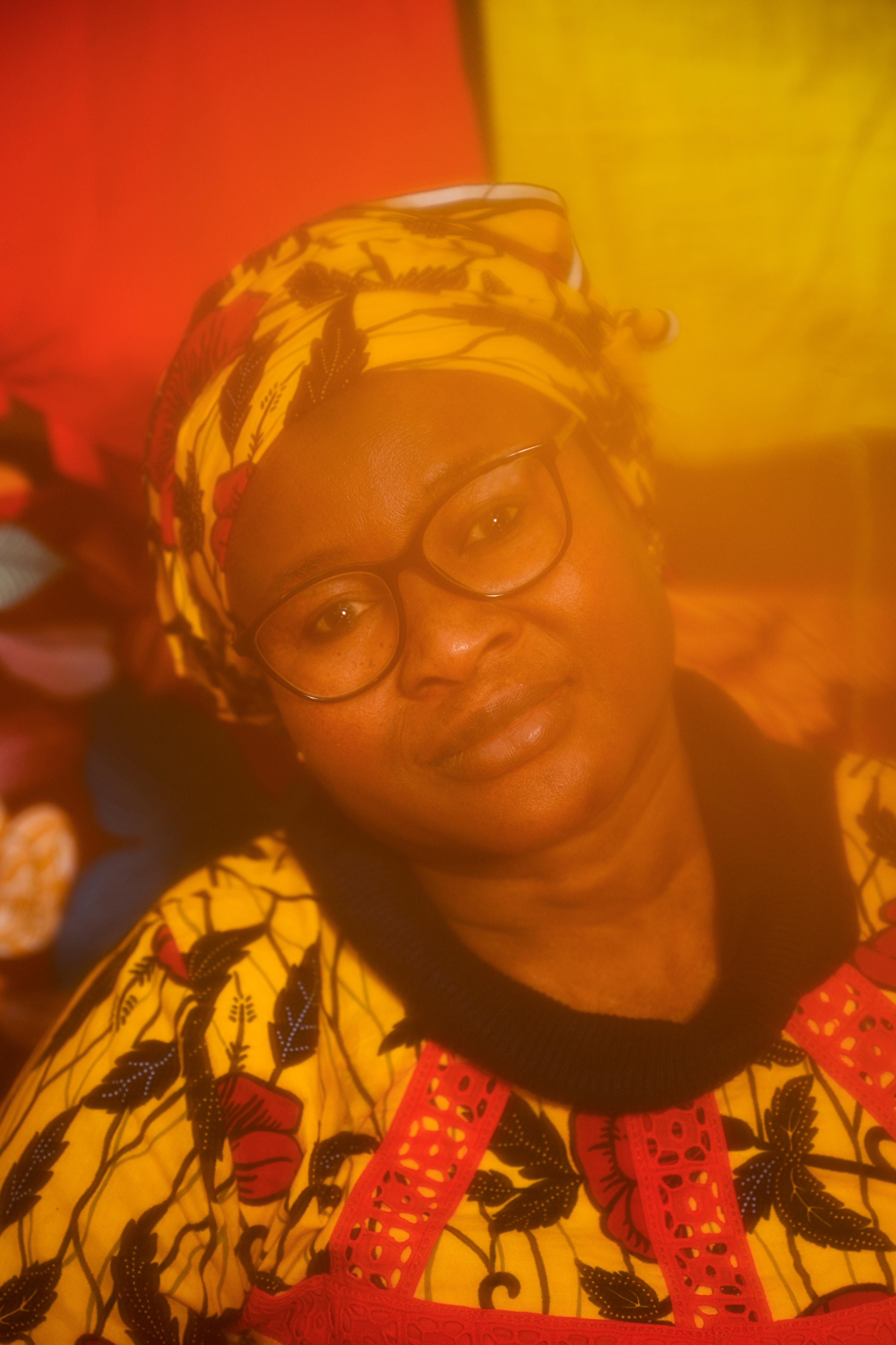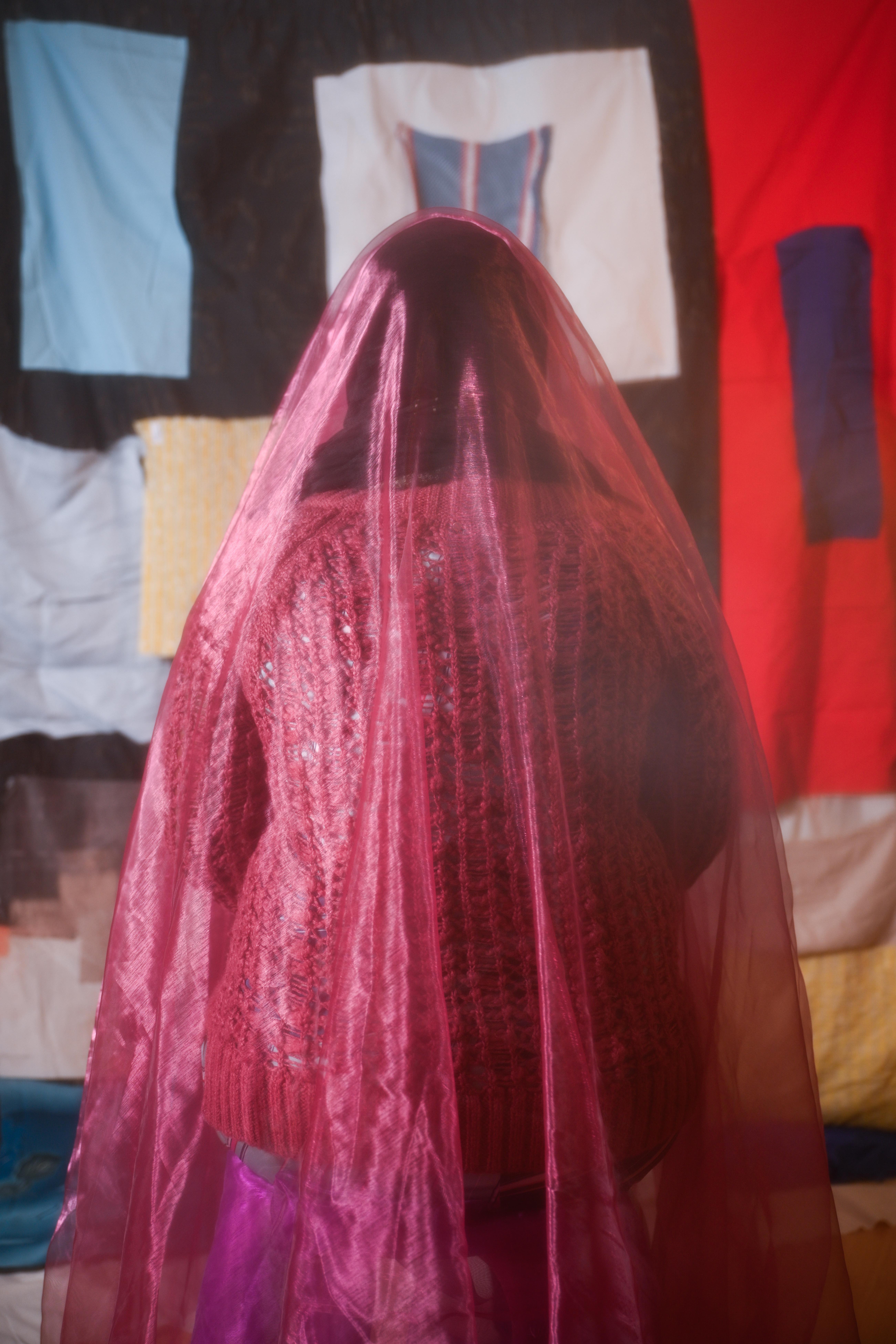 To root ourselves in the present and weave connections between each group member, we explored our "safe place" through photography and textiles. The fabrics may be those of our everyday life, the ones we wish to wrap ourselves in for protection, or to evoke a particular memory. Over the course of our sixteen workshops, each woman, drawing from her personal story, came to seek out, rediscover, create, weave, and sew her own textile composition.Using photography, Romane, with Maëlle's collaboration, took portraits of these women merging with their creations, transforming into backgrounds for photographic studios. Listening to factual stories, desires for elsewhere, and wishes for the here and now, she already plays, in these captured moments, the blur between reality and imagination. Throughout the workshops, armed with disposable cameras, the women captured images of their "safe havens" in their Brussels daily life. From these shots, Maëlle introduced workshops on cyanotypes on fabrics, an ancient photography process invented by Anna Atkins in 1843.